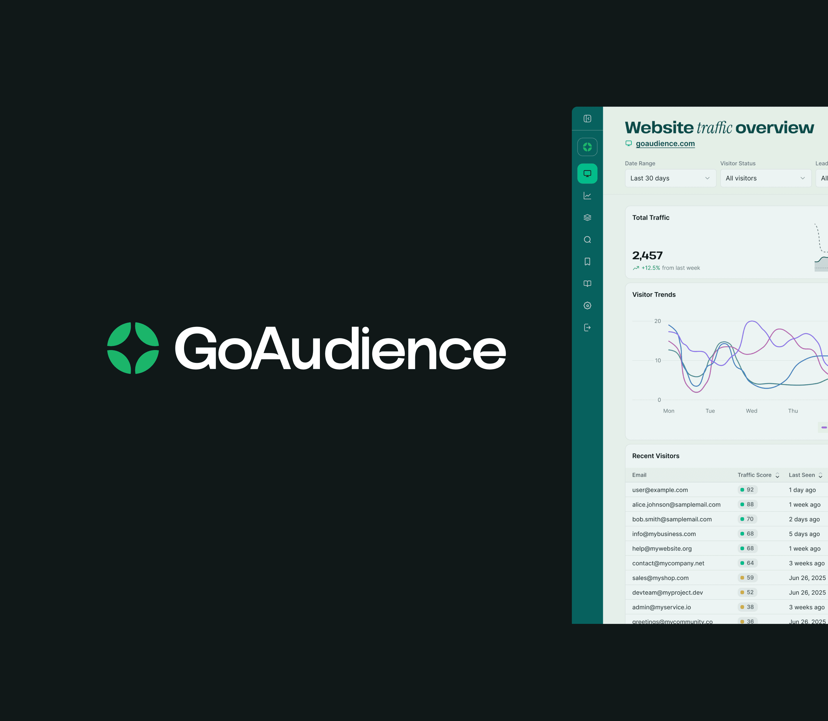 GoAudience helps brands spot high-intent buyers, target better audiences, score and identify traffic, and personalize engagement with spend-driven precision.
