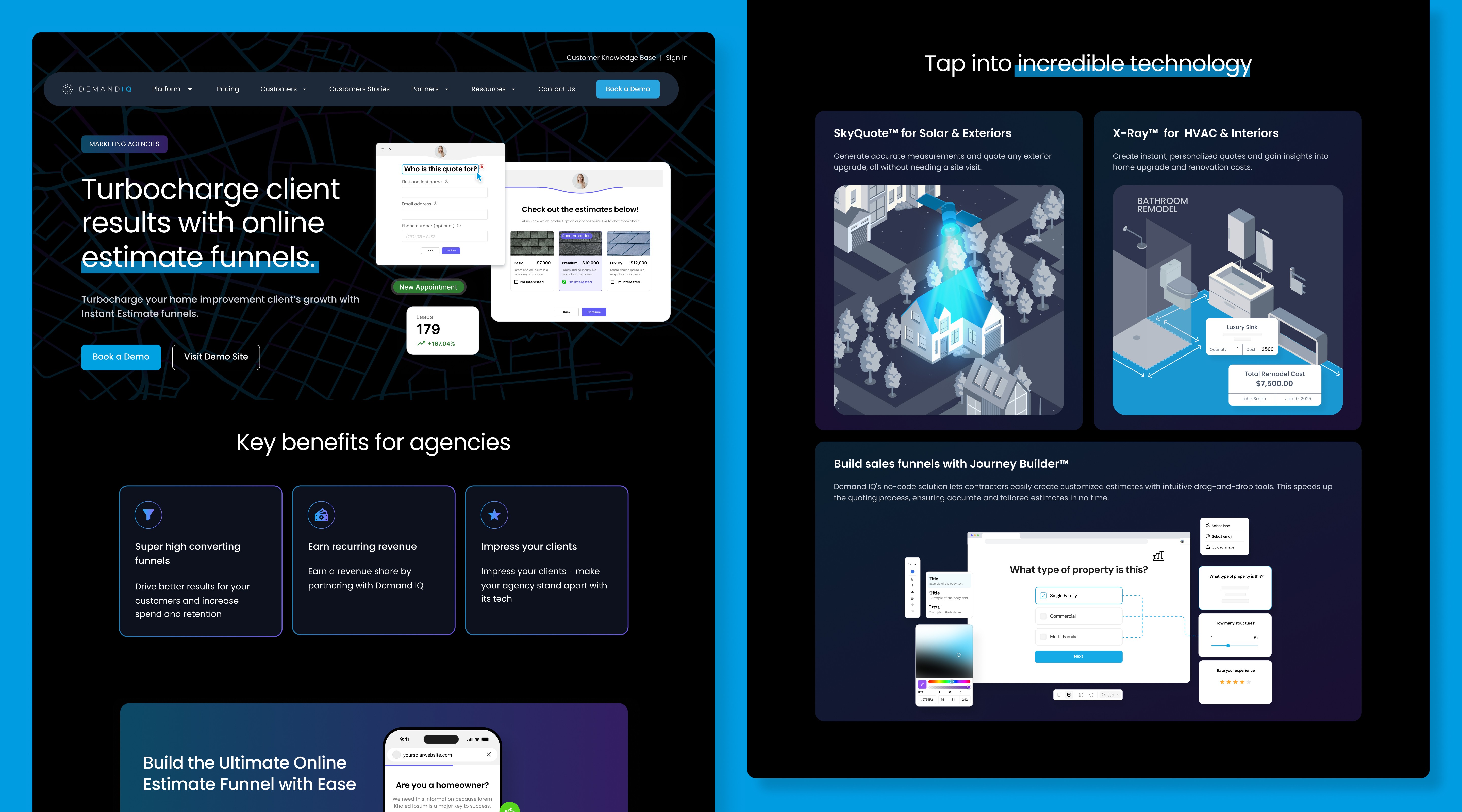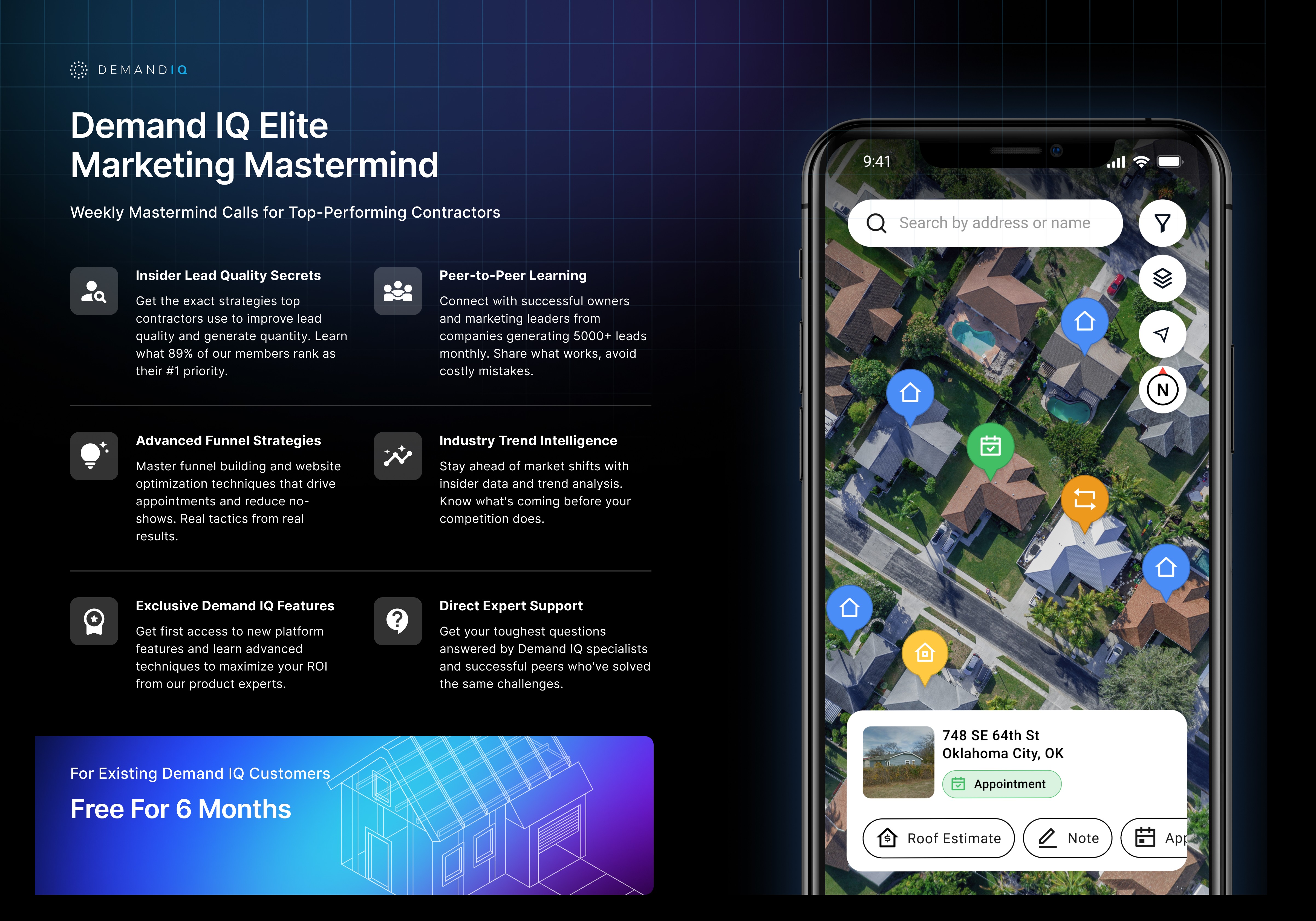 Demand IQ’s mission is to replace these processes with data-driven experiences that scale growth. It delivers instant, AI-powered estimates by address, eliminating site visits, and connects homeowners with contractors through accurate quotes and automated lead qualification.