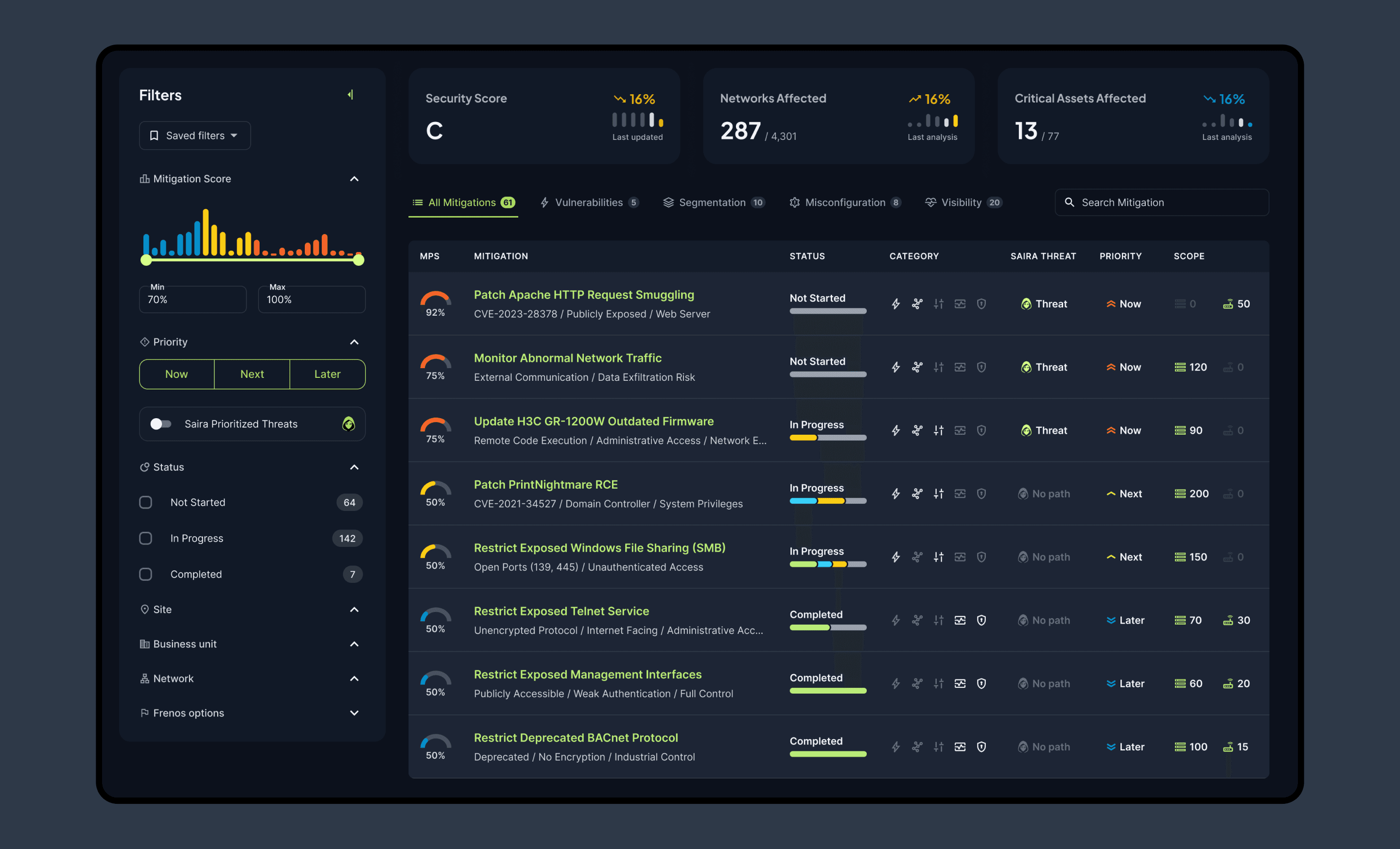OT networks can span thousands of assets, often organized under business units, DMZ zones, and segmented architectures riddled with blind spots. Being able to clearly see your network posture is just as critical as being able to fix it. We worked closely with the Frenos team to create a best-in-class visualization layer for identifying vulnerabilities and attack paths across complex OT topologies.