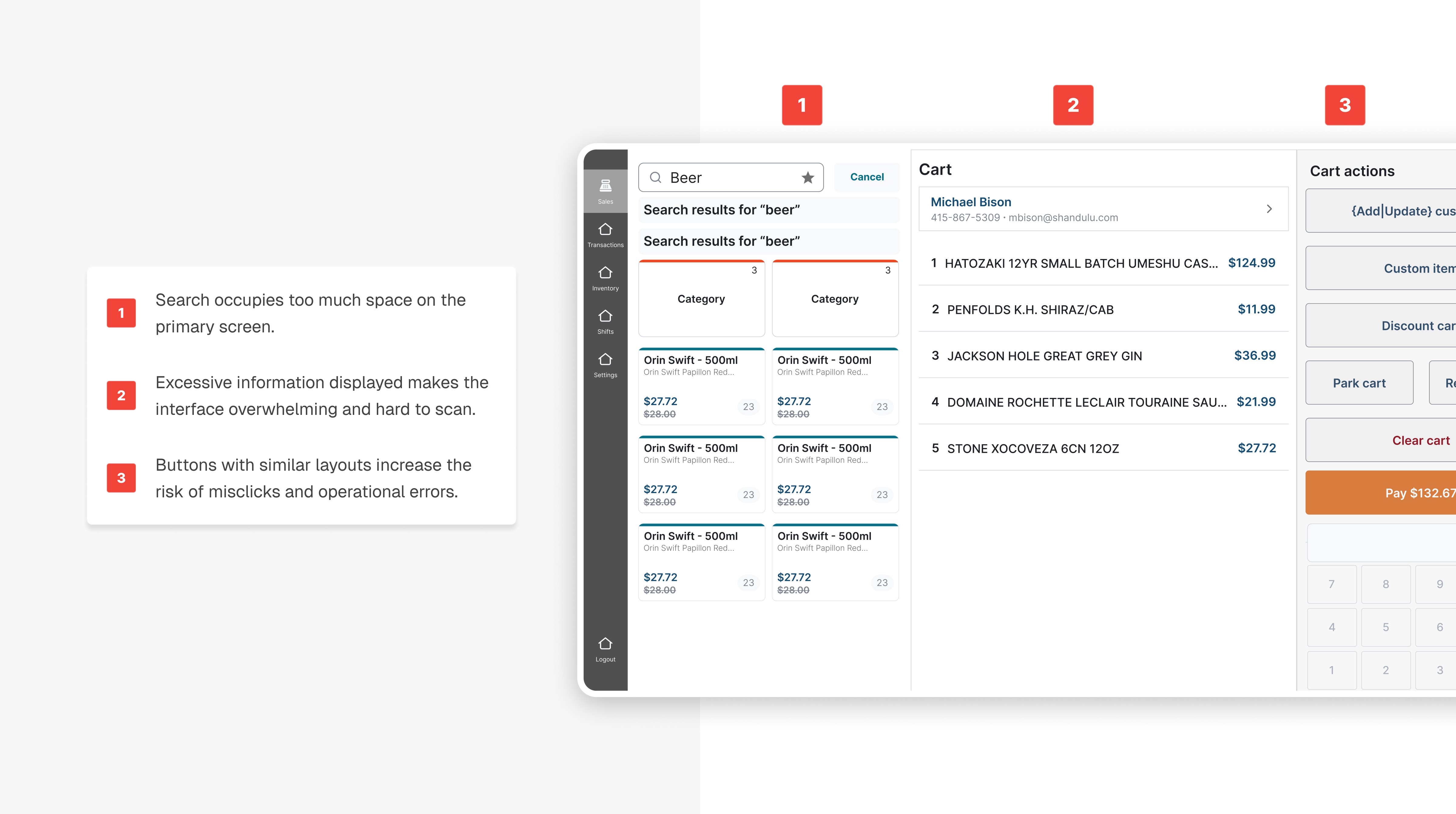 Cashiers faced a cluttered terminal with excessive options and unclear priorities, causing operational bottlenecks, increased errors, and reduced throughput which hindered revenue growth.
