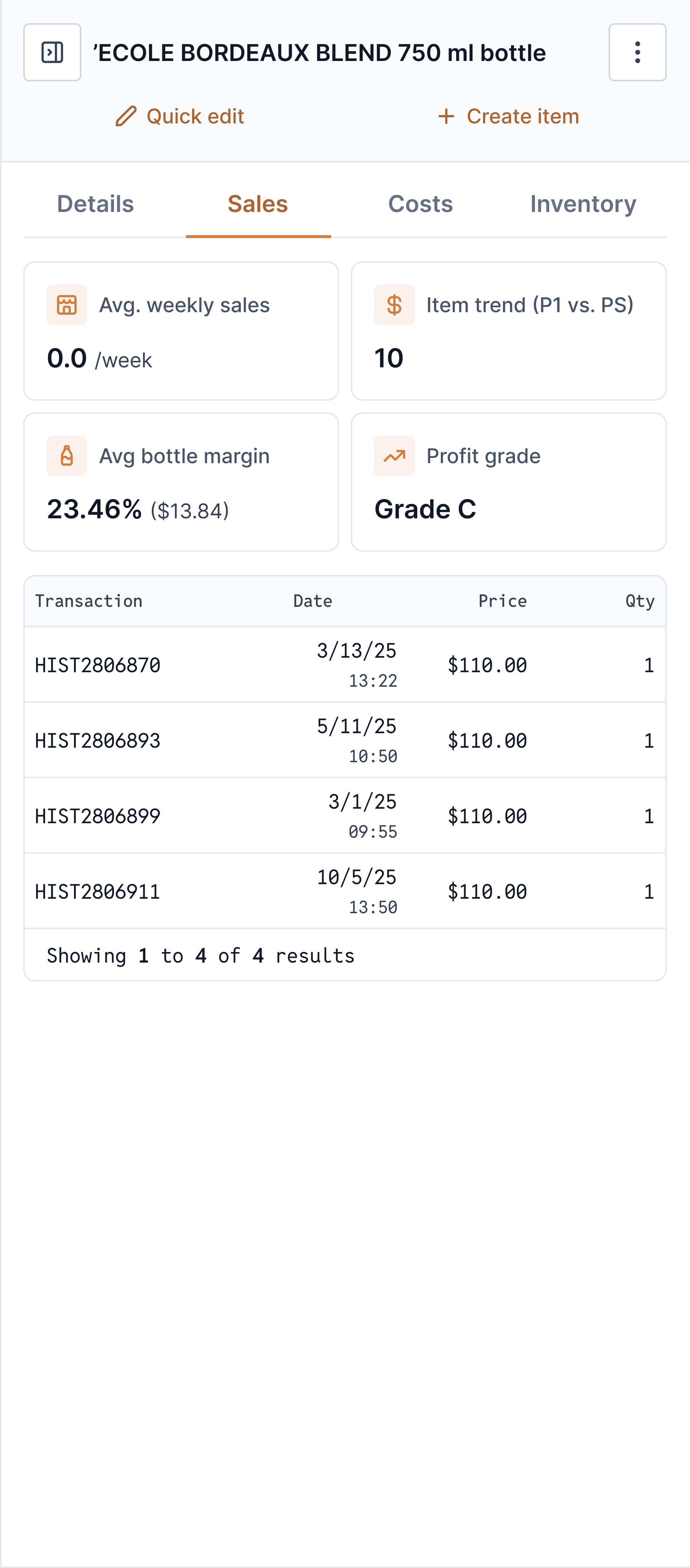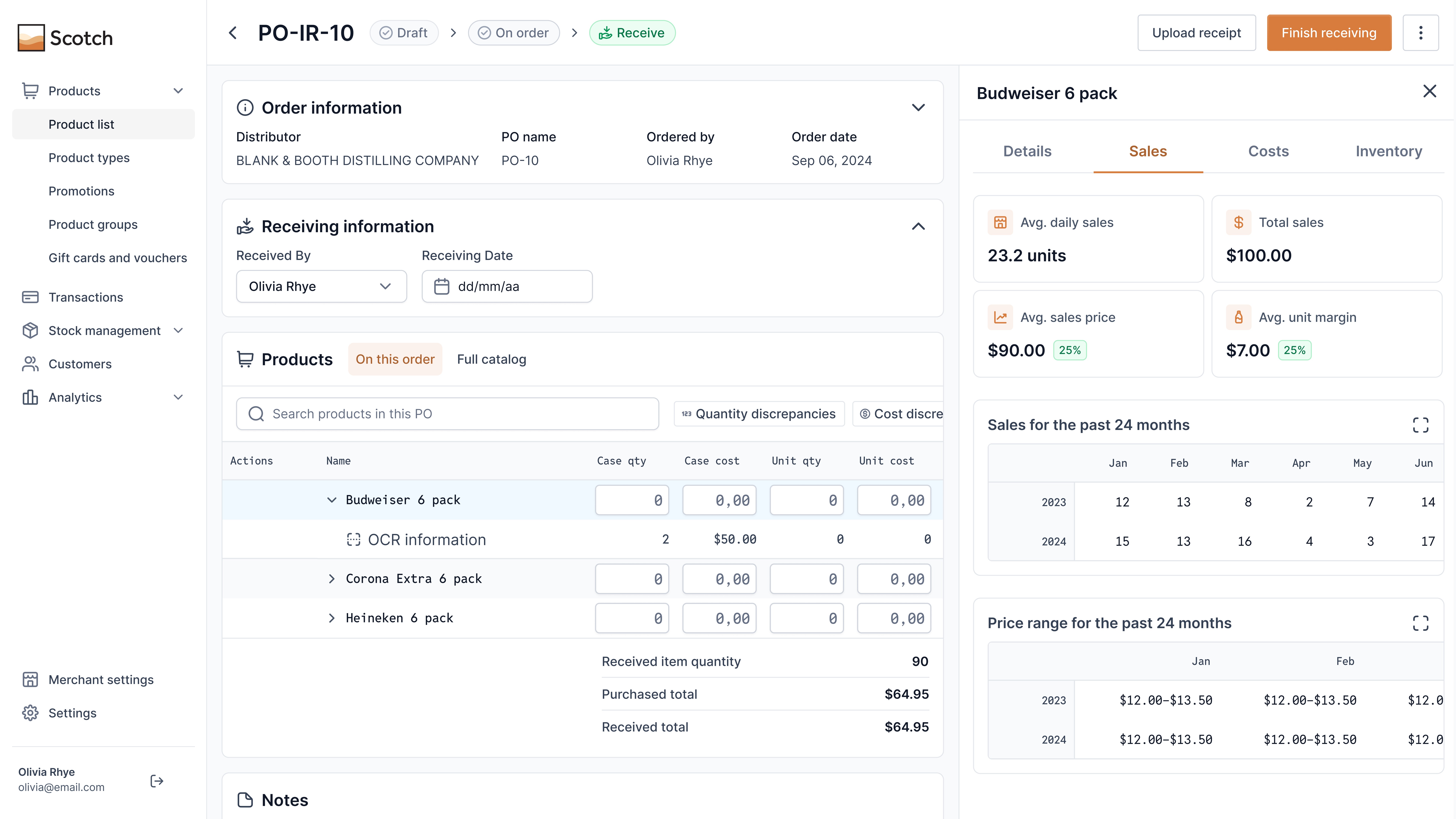 We created a focused product details layout prioritizing key variables and hiding less essential info, enabling managers to act quickly and maintain flow. A product insights panel provides sales history and trends, helping optimize inventory, reduce costs, and keep stock lean.