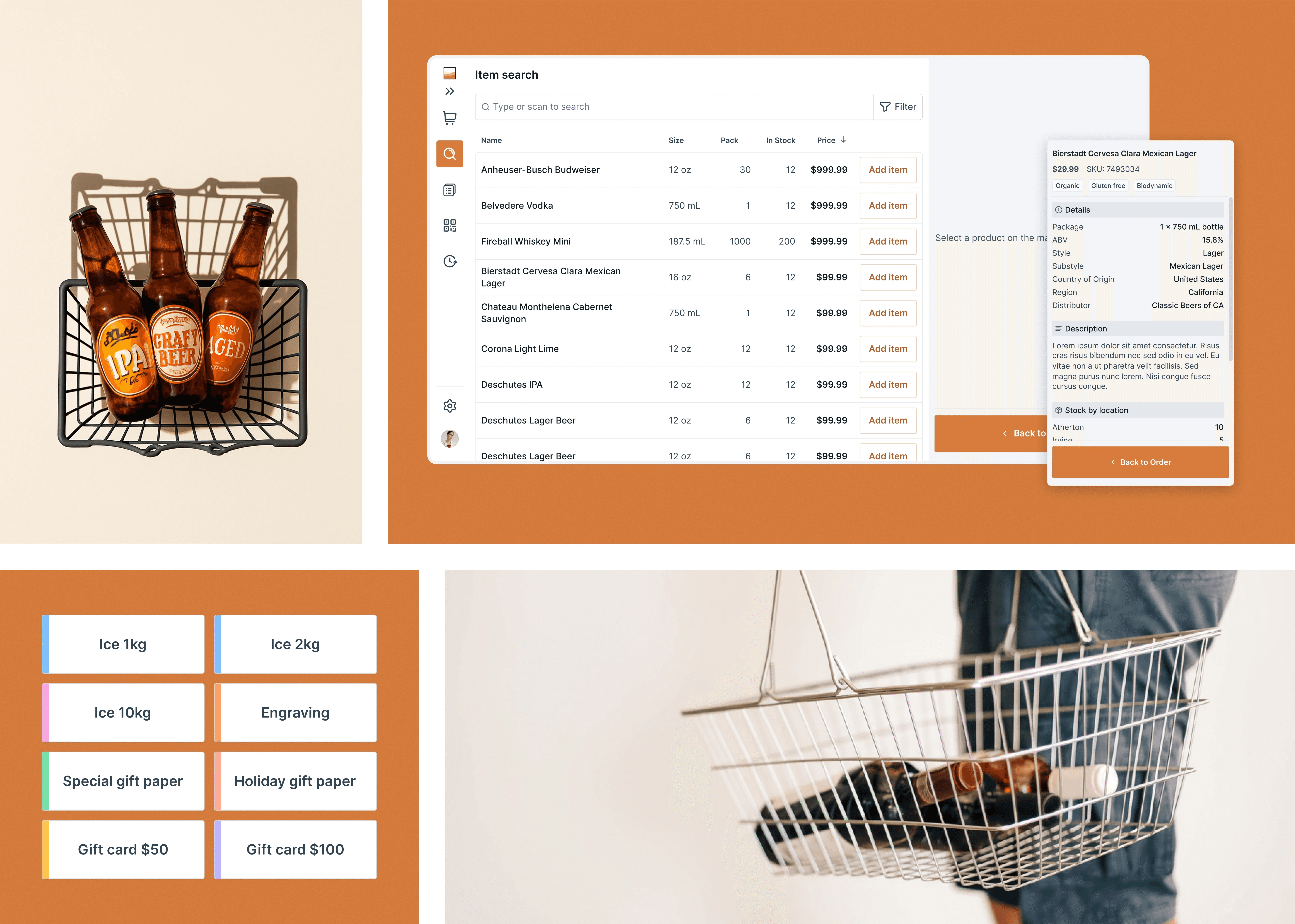 We redesigned the interface to prioritize key actions and reduce cognitive load. Intuitive color-coded cues enabled faster, more confident decisions. Moving product search to a dedicated screen decluttered workflows, while a quick-access info panel allowed seamless customer support.