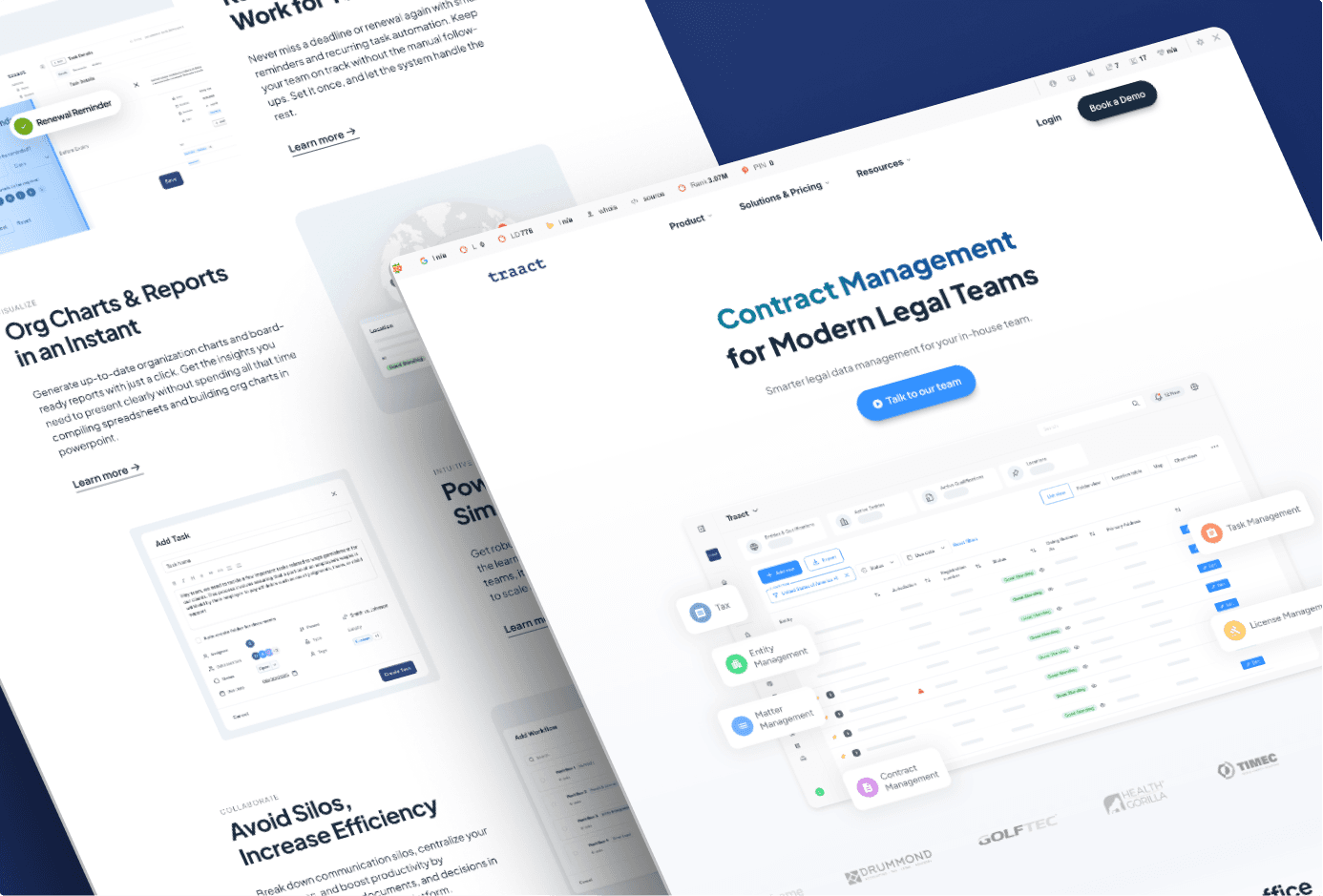 Disconnected tools and siloed data limited visibility and slowed decision-making across teams. We unified product experiences, data structures, and workflows into a single system—ensuring consistency across entities, documents, and tasks. This integration enabled better collaboration, improved data reliability, and gave teams a clear, real-time view of their legal operations.